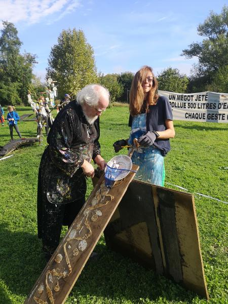 Partageant leur sensibilité pour la co-création, MapO et Loren, artiste plasticien lyonnais, ont mené à quatre mains un atelier artistique participatif sur les berges lors du rassemblement intercommunal organisé par la Coopérative de la Transition Val de Saône : les volontaires présents, petits et grands, étaient invités à imaginer une installation éphémère à partir des déchets collectés. Une manière de porter un regard différent sur ce que nos déchets racontent de nous.